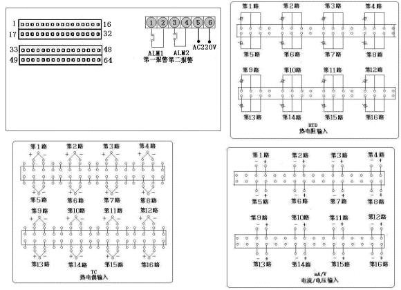 十六路巡檢統一控制/報警輸出,通訊方式RS485,繼電器輸出,輸入類型CU50,第一報警為下限報警,第二報警為上限報警,不帶報警記憶功能,AC90~265V供電。 | ||||||||||||||||||||||||||||||||||||||||||||||||||||||||||||||||||||||||||||||||||||||||||||||||||||||||||||||||||||||||||||||||||||||||||||||||||||||||