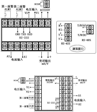 注:外形尺寸為4與9的儀表不能同時做上,下限報警與變送輸出。